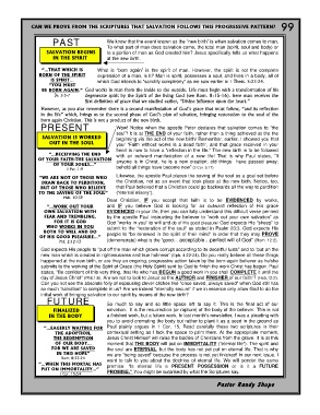 FOR WE ARE SAVED we are “being saved” because the process is not yet finished! In our next issue, I